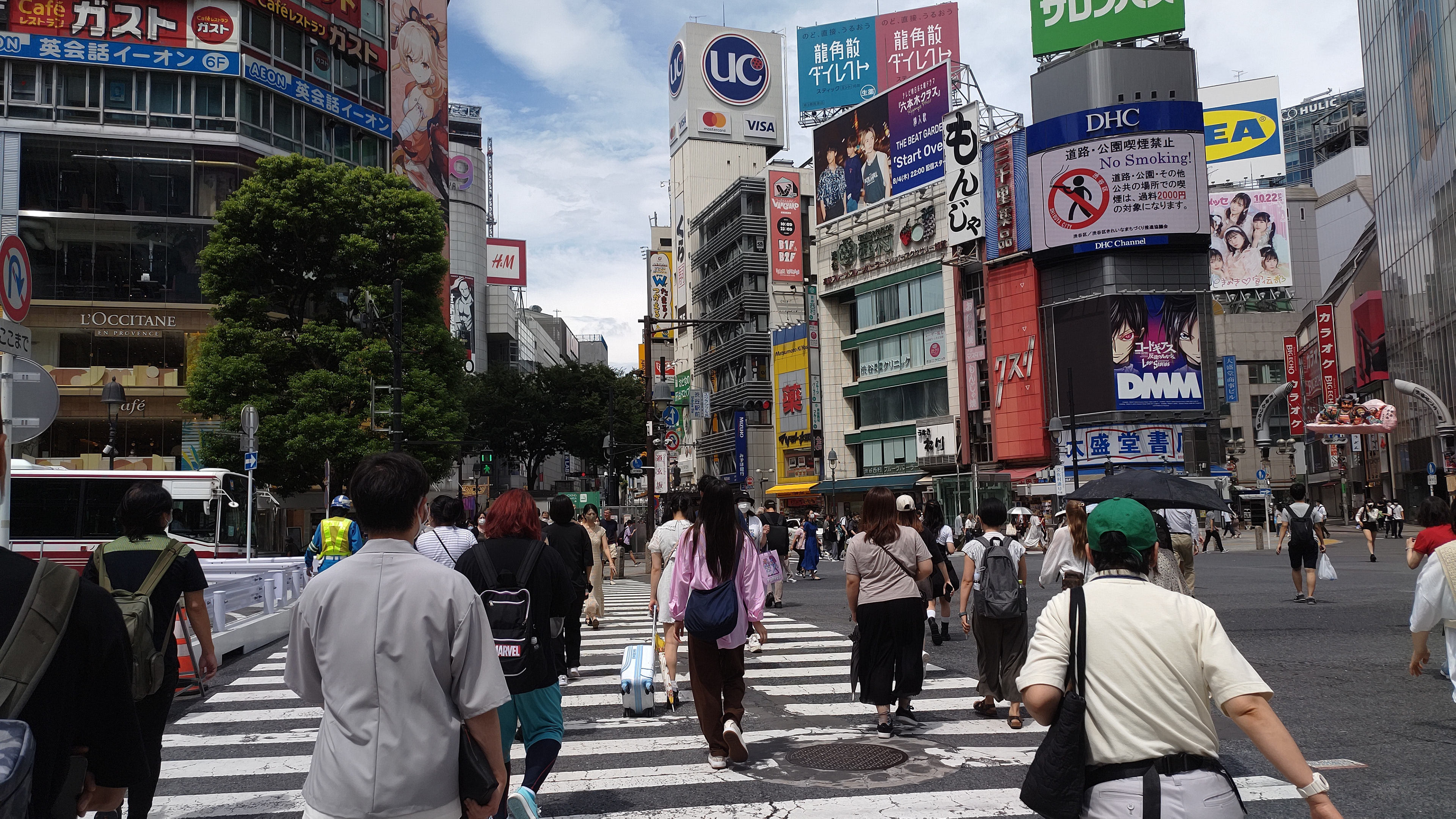 渋谷での獅子舞は途中何回も休憩を必要としたが、結局演舞の時間はたったの 2 時間ほどだっ た。 秋田県五城目町では合計 5 時間くらいは 1 日で舞い続けていた気がするので、疲労が来 るのが早かった。その疲労感はアスファルトを踏んでも土の様に上手く反応が帰ってこないこ とや、音が響かずに人混みに吸い込まれて消えていく感覚から来るようにも感じていて、自分 の体内にエネルギーが注入されずに空っぽになっていく感覚とも近いように感じた。とにかく 渋谷は強敵だ。全国を探してもこれほど獅子舞が舞いにくい町は少ないだろう。(2022年8月13日~ 17 日)